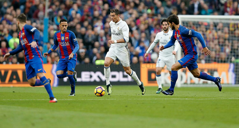 Cristiano Ronaldo moving the ball forward in Barcelona vs Real Madrid in December of 2016