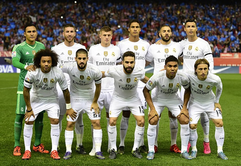 Real Madrid starting eleven for the derby match at the Vicente Calderón in September of 2015, against Atletico Madrid