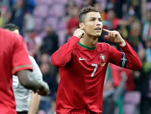 Cristiano Ronaldo asking for a pass to his left, during Portugal vs Croatia, in 2013