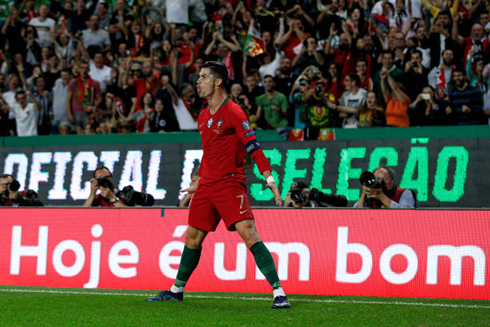 Cristiano Ronaldo shows his happiness after scoring for Portugal