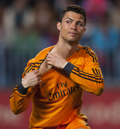 Cristiano Ronaldo goal celebration in Malaga 0-1 Real Madrid