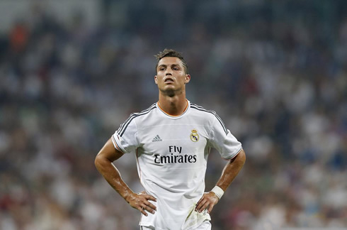 Cristiano Ronaldo putting on his sad and upset face, in Real Madrid 2013