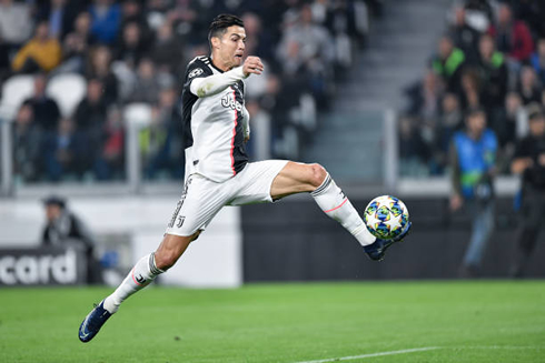 Cristiano Ronaldo controlling the ball in the air with his left foot