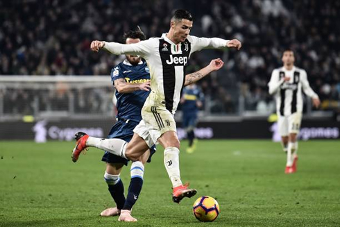 Cristiano Ronaldo in a dribbling action in Juventus vs SPAL