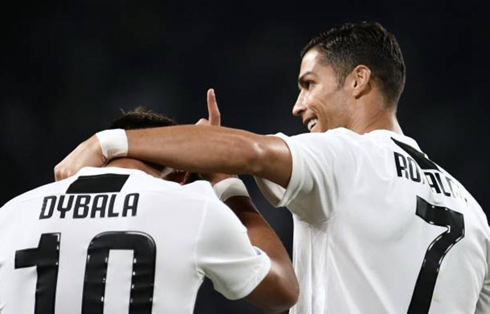 Paulo Dybala and Cristiano Ronaldo celebrating together another Juventus goal