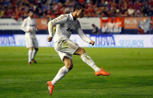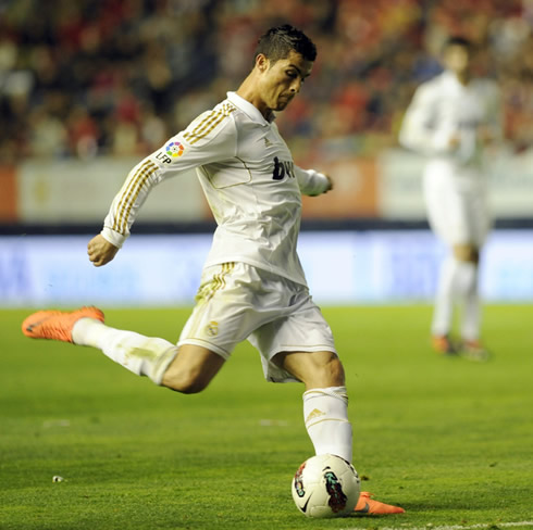 Cristiano Ronaldo powerful knuckle ball shot, in Osasuna vs Real Madrid in 2012