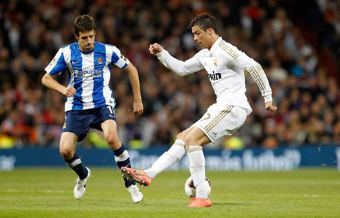 With roughly half an hour played, Real Madrid extended the lead to 2-0, precisely what they've failed to accomplish in their last 2 games and which proved to be fatal at the end. Kaká made a great through pass to Cristiano Ronaldo and the Portuguese exploited a lot space granted by Real Sociedad's backline, just before beating Bravo and put Real Madrid with a 2 goals cushion.