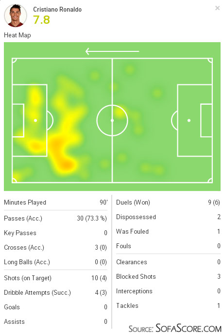In the second half Benitez tried to adapt, throwing on James Rodriguez in search of a goal. But time and time again, Madrid would continue to fall short. The finishing was lacking, Ronaldo was not his usually sharp self and Sporting Gijón seemed to grow in confidence with each shot that went wide or was parried by the keeper. Despite all that, CR7 was still voted Madrid's 2nd most valuable player on SofaScore's rating system, as he earned 7.8 points and only stood behind Modric with 8.2.