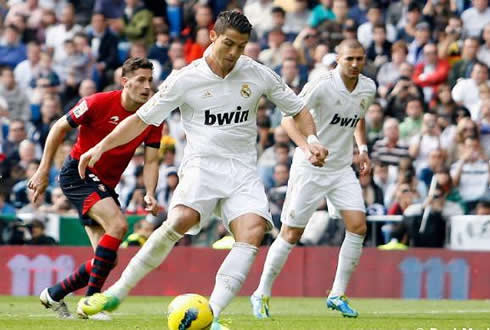 In Real Madrid last matches, the team has been slowing down the game's tempo everytime the score allows them to do so. However, José Mourinho's men seemed to have different instructions this Sunday morning, as they came from the locker rooms looking to push forward and going after more goals. In the 54th minute, Mesut Ozil got tackled inside the penalty area, resulting in Osasuna's defender being sent off. Cristiano Ronaldo was then allowed to show how good he is from the penalty spot. It has been a long-time since Ronaldo missed a penalty and this morning, he easily fooled the goalkeeper to make his 2nd of the game. Ronaldo decided to come up to the 2nd half with a new hairstyle (his hair was pulled back) and he seemed very motivated to add more goals to his tally. It didn't take too long for the Portuguese player to reach his hat-trick, since close to the 58th minute, CR7 managed to head another ball to the back of the net, this time from a good cross made by Alvaro Arbeloa.